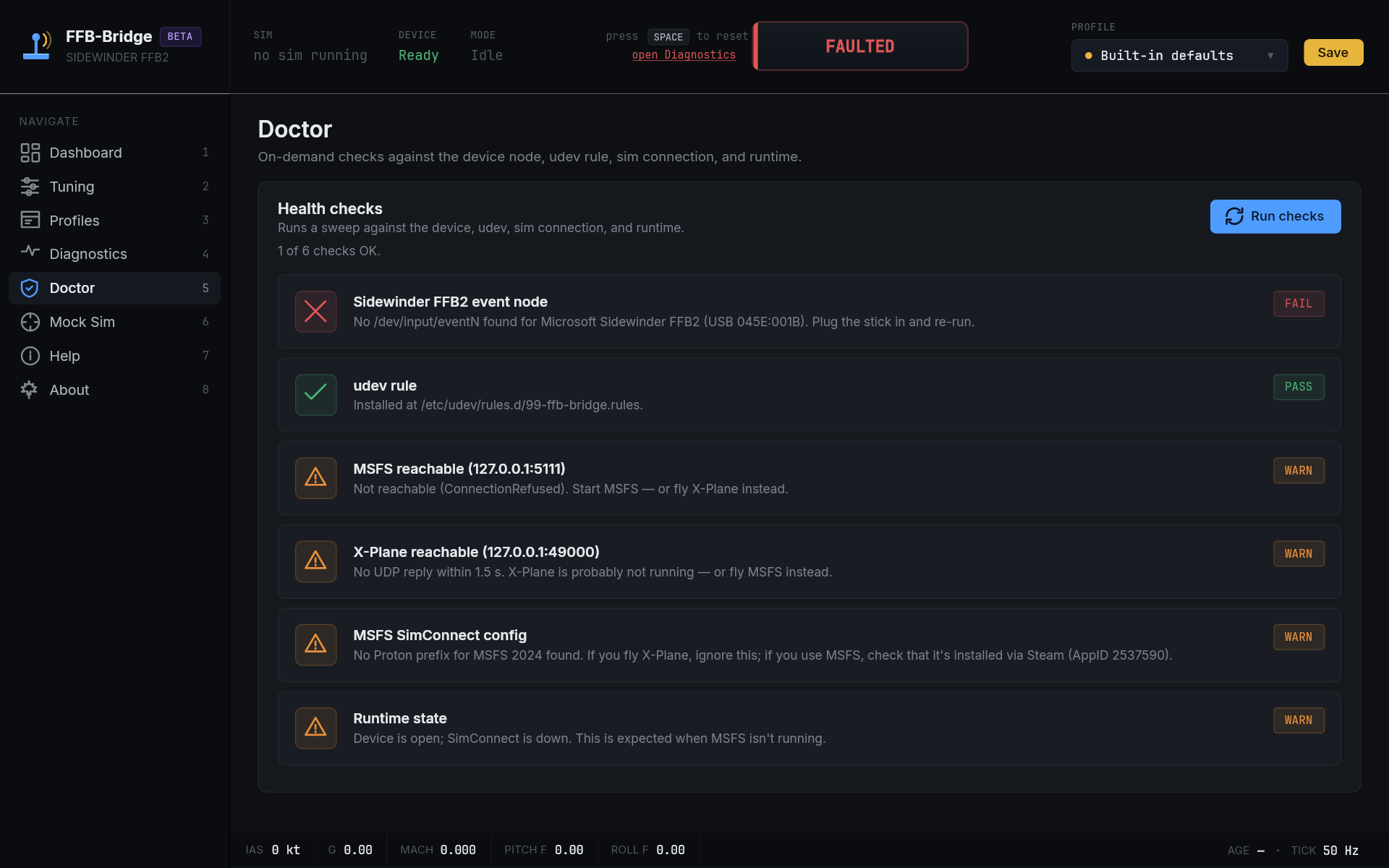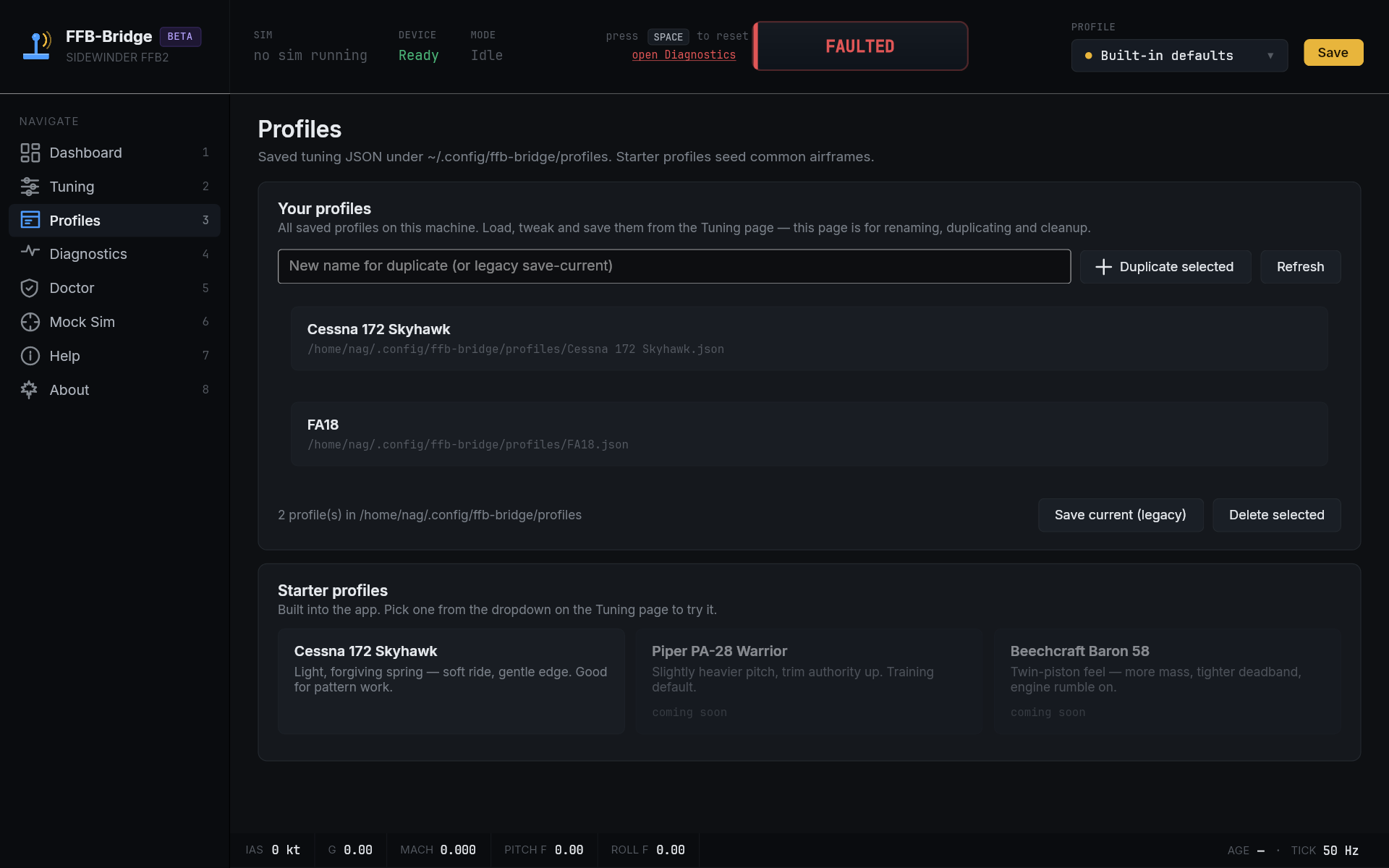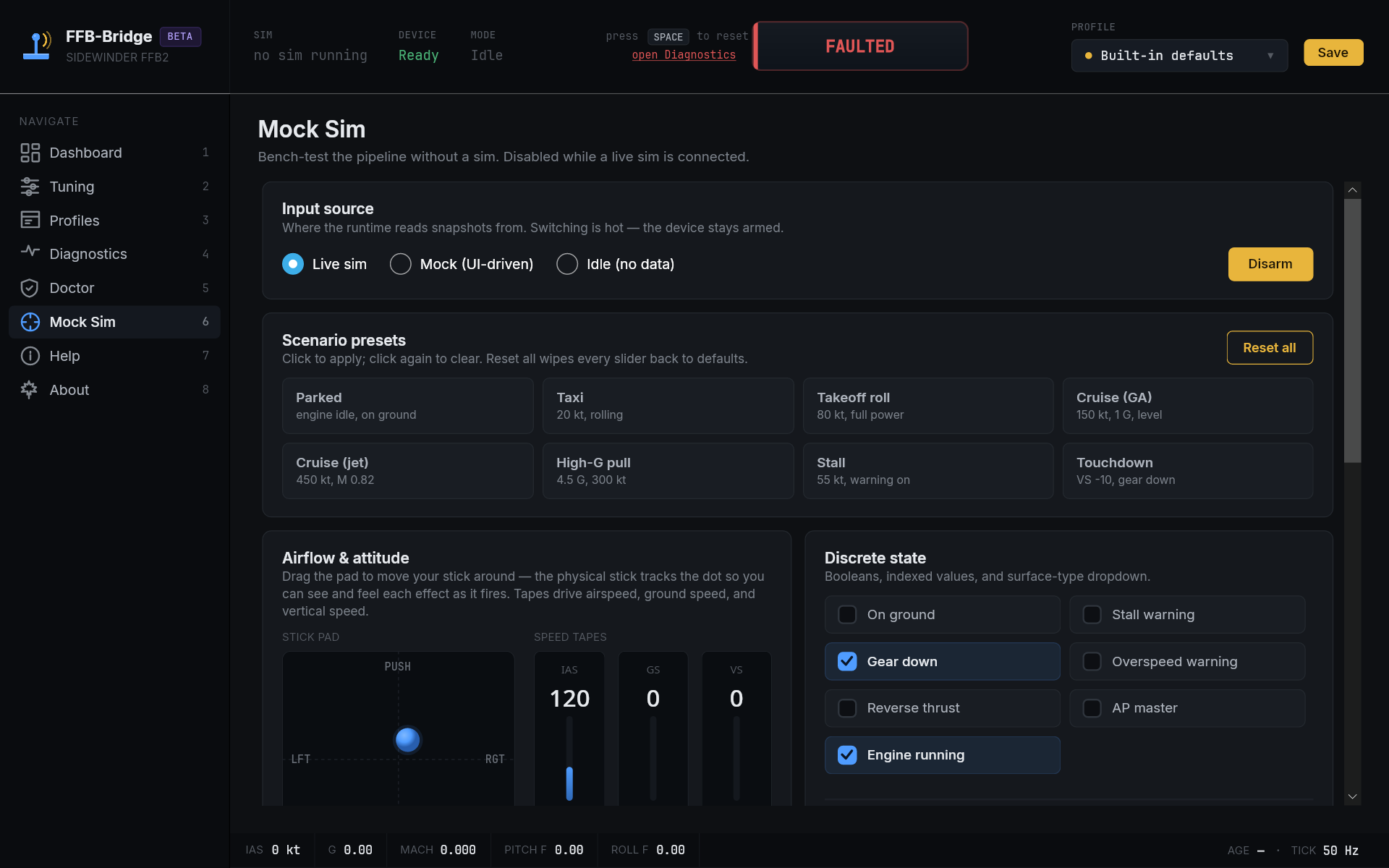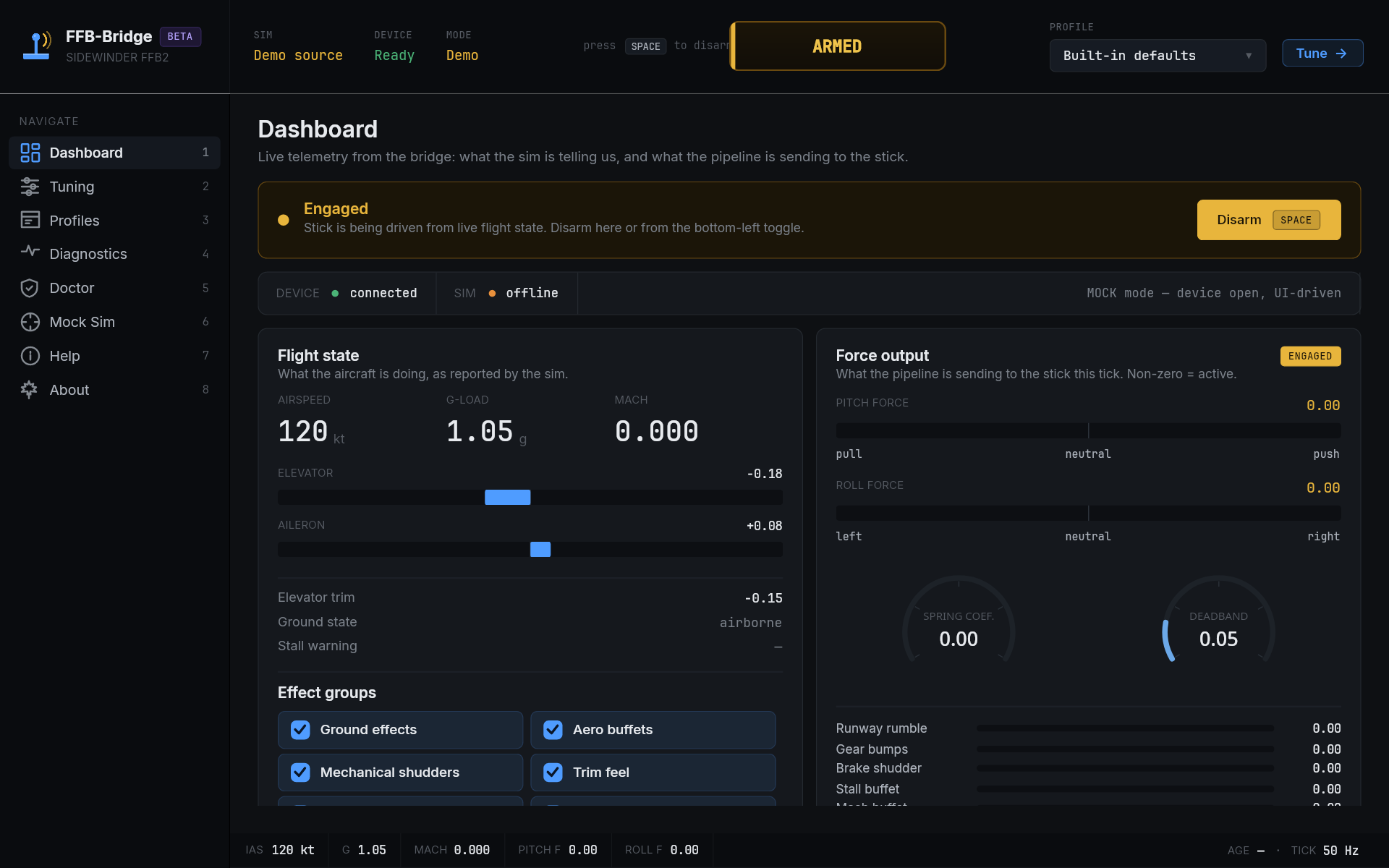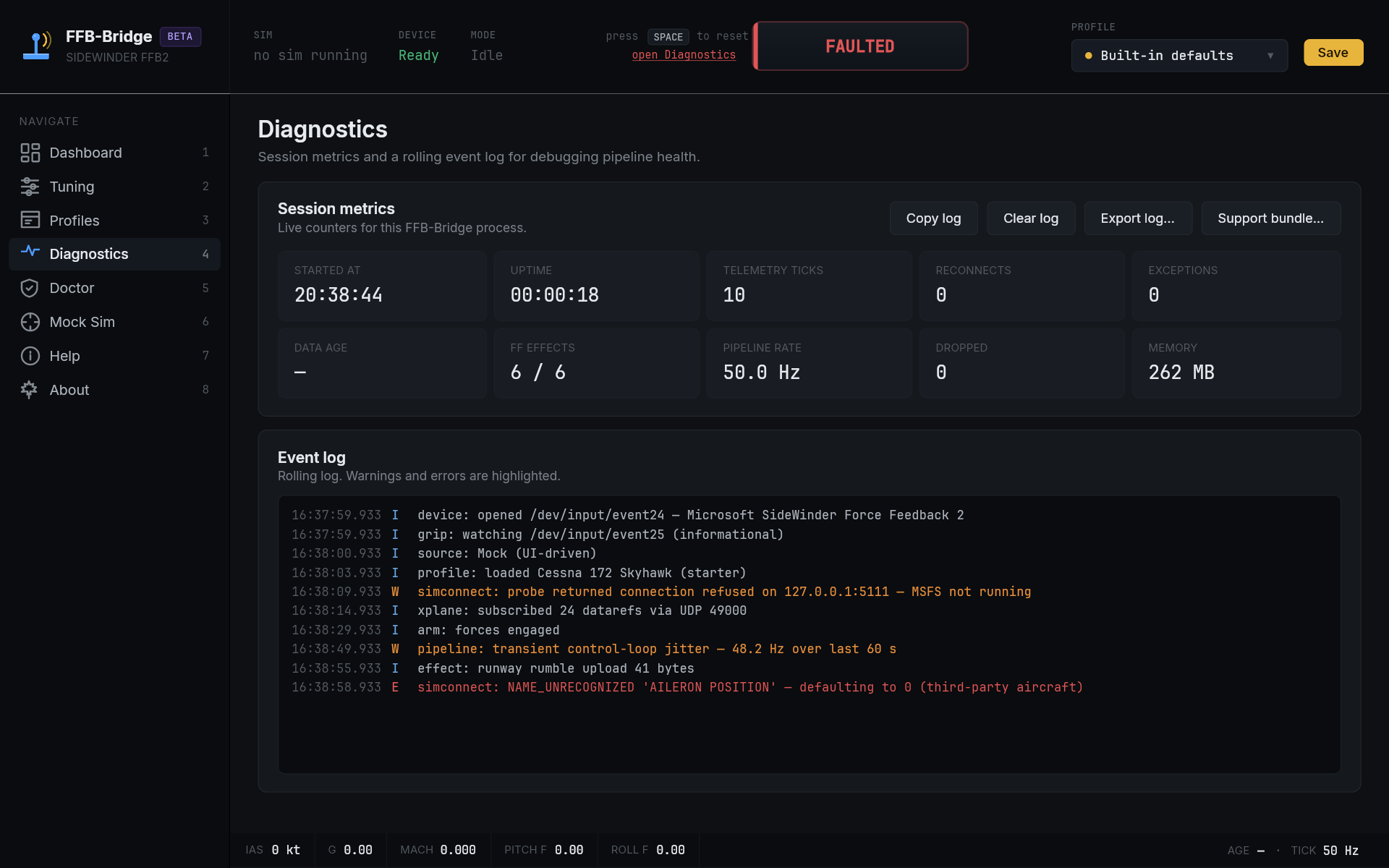 FFB-Bridge is a solo project, built for simmers by a simmer. The beta exists to put the force model in front of a wider range of aircraft and flying styles than one workbench can cover.